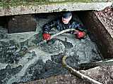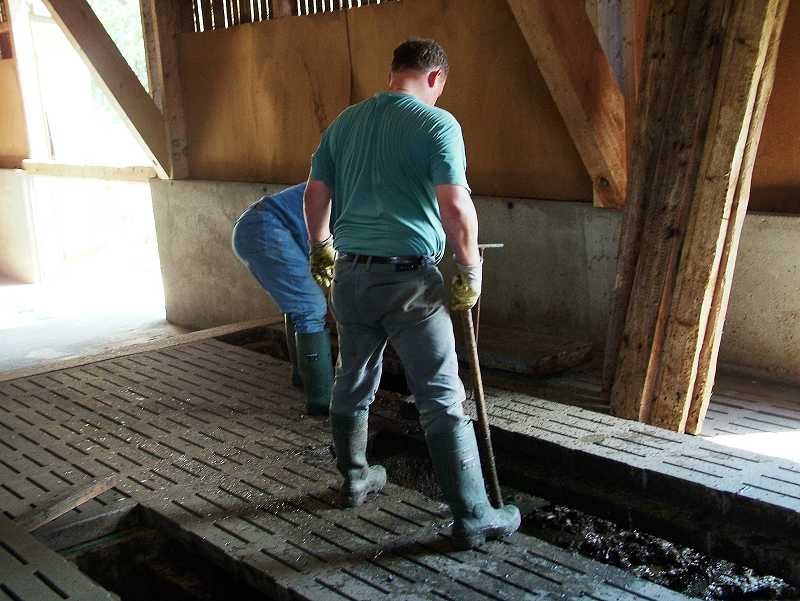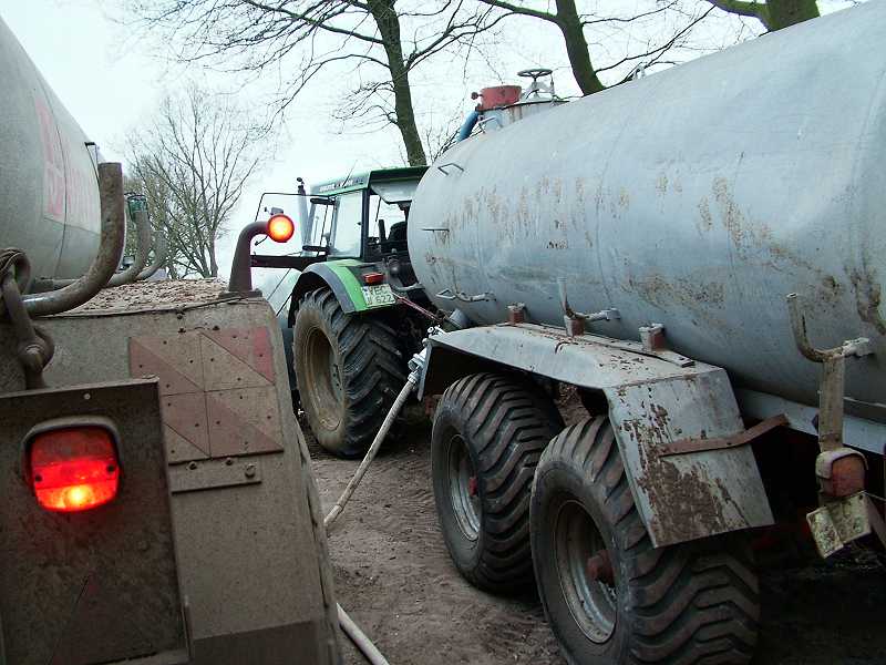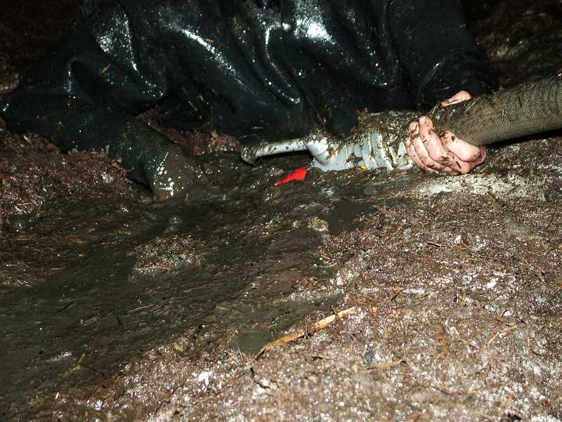 mit Feuerwehrlanze gerührt und gleichzeitig abgesaugt
