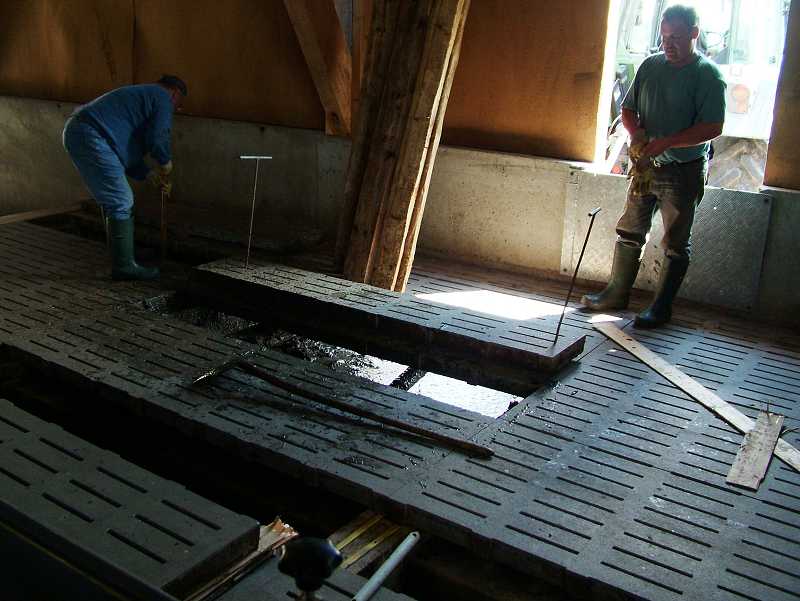 Massive feste Schicht ca 1m mit Stroh mit Feuerwehrlanze gerührt